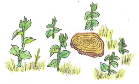 うちには柿の木が3本あったが、2本を伐った。残った1本は1928年に親がこの土地を借りたとき、すでに生えていたもので、今は全身苔におおわれているが、まだ実がなる。次郎である。伐った2本は禅寺丸と庄内柿。その伐った庄内柿のまわり、半径3mほどのところに沢山の芽が出た。見事である。大きな樹は手入れが大変なので欅とくるみと桑も伐った。さぞかしワイワイと沢山の芽が出ることであろう。ガンの予防と治療に「根と芽がよい」という説があり、アメリカに住んでいる友人は現に「スプラウト」を食べ続けてガンを克服した。芽は小さいうちに外敵から身を守るために毒をもっている。春になると様々な芽を摘んで樽に入れ黒砂糖を入れて発酵させ、その汁を畑の害虫よけに使う。根もまた一種の毒を持っていて外敵に備えている。